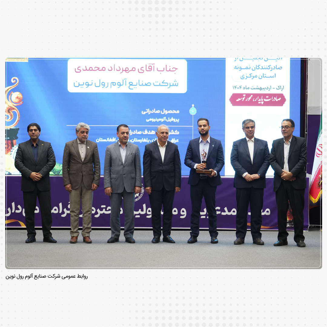 “انتخاب صنایع آلوم رول نوین، بعنوان صادر کننده نمونه استان مرکزی”